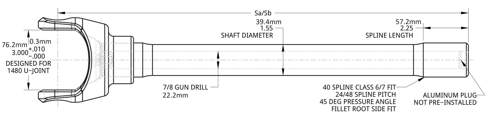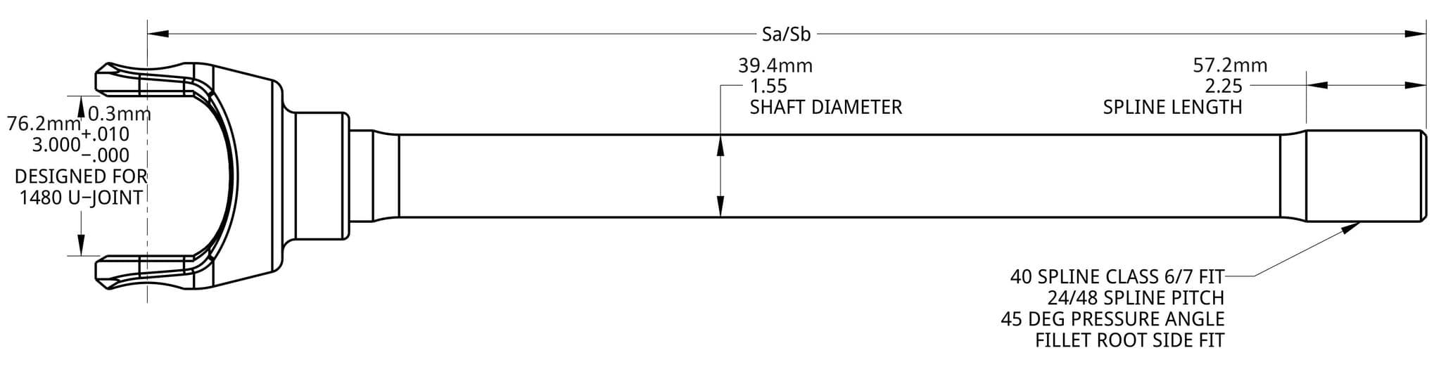When ordering your Spidertrax 40 Spline Ultimate Axle Shafts, please refer to the drawing below when entering in your measurements for options Sa or Sb. The unit of measurement is inch and this number should be keyed in using decimal format.
