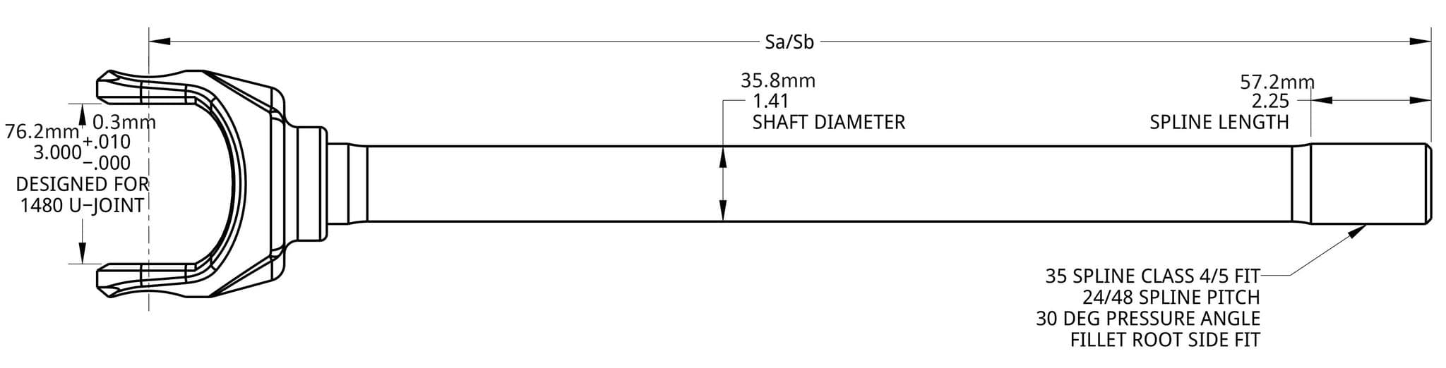When ordering your Spidertrax 35 Spline Ultimate Axle Shafts, please refer to the drawing below when entering in your measurements for options Sa or Sb. The unit of measurement is inch and this number should be keyed in using decimal format.