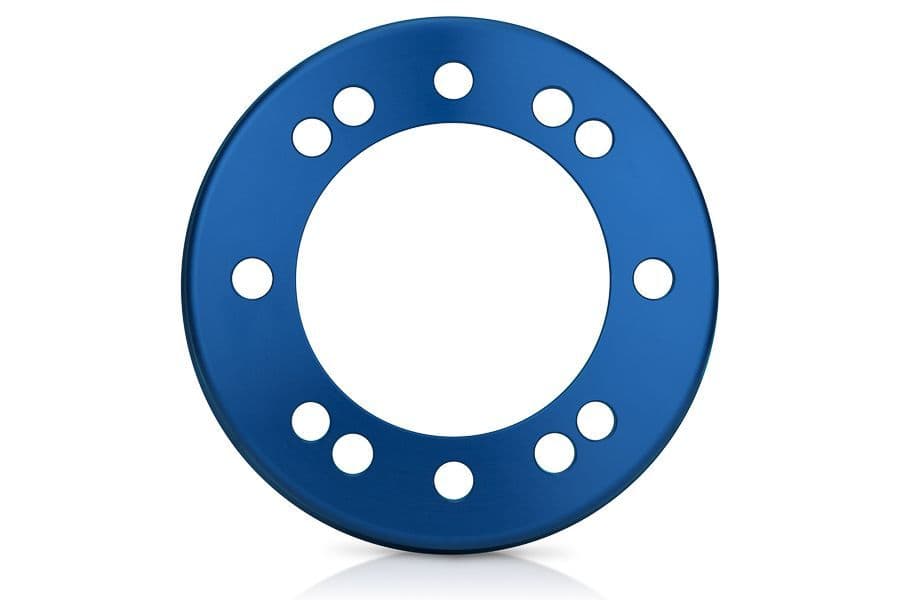 Manufactured from billet 6061T6 aluminium, the Spidertrax Aluminium Hat packs incredible strength at an impressive weight of under 2 lbs (0.9kg). Designed specifically for rock racers, you'll no longer have to retro fit other manufacturers' hats to work with your bolt pattern. All hats are anodised in blue, using an anodising process for double corrosion resistance.